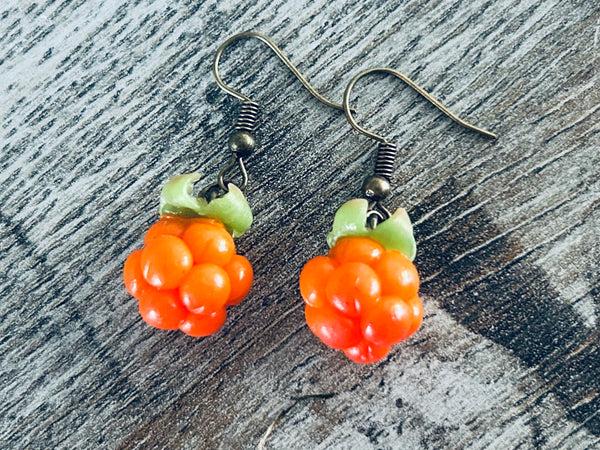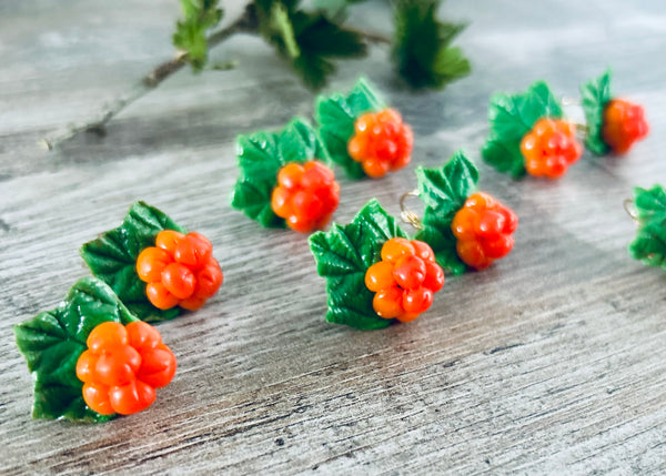 Bunte Himbeer-Ohrringe aus Polymer-Ton